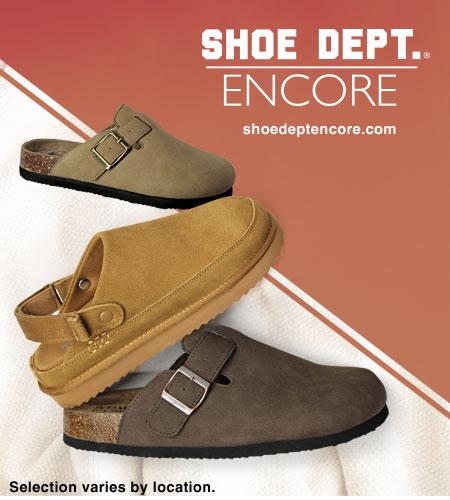 Shoe Dept. EncoreEffortless fall style for everyone. ☕️ From cozy days at home to coffee runs, our slip-on clogs and casuals are perfect for the whole family. Selection varies by location. While supplies last. Some exclusions apply.